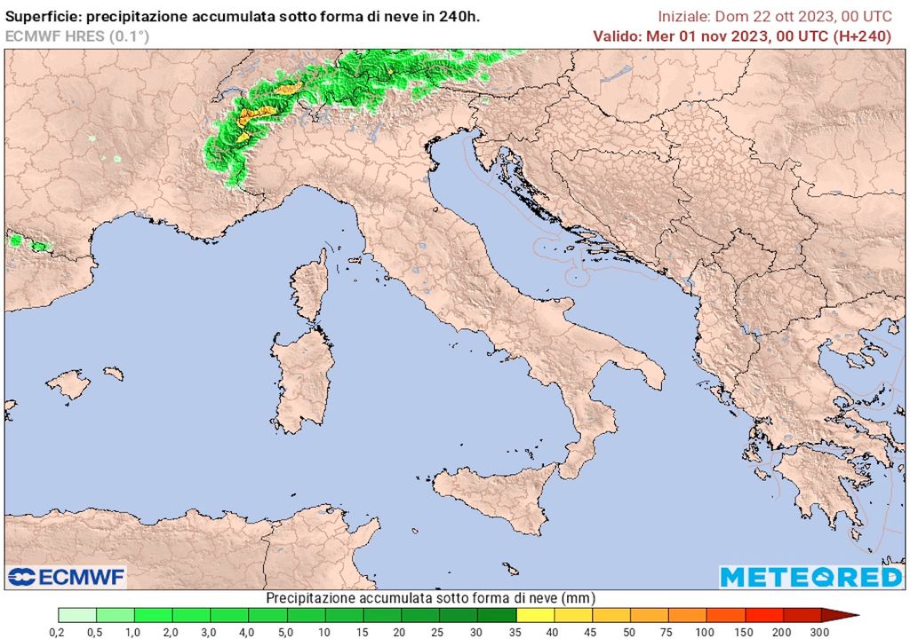 Queste condizioni dovrebbero portare nevicate sulle Alpi attorno ai 2000 m, sui passi alpini potrebbe servire l’equipaggiamento invernale e i ghiacciai dovrebbero finalmente essere coperti dalla prima neve stagionale. Qualche fiocco in queste condizioni è ipotizzabile anche nelle valli alpine più alte, ma pare presto per la prima formazione del manto nevoso.