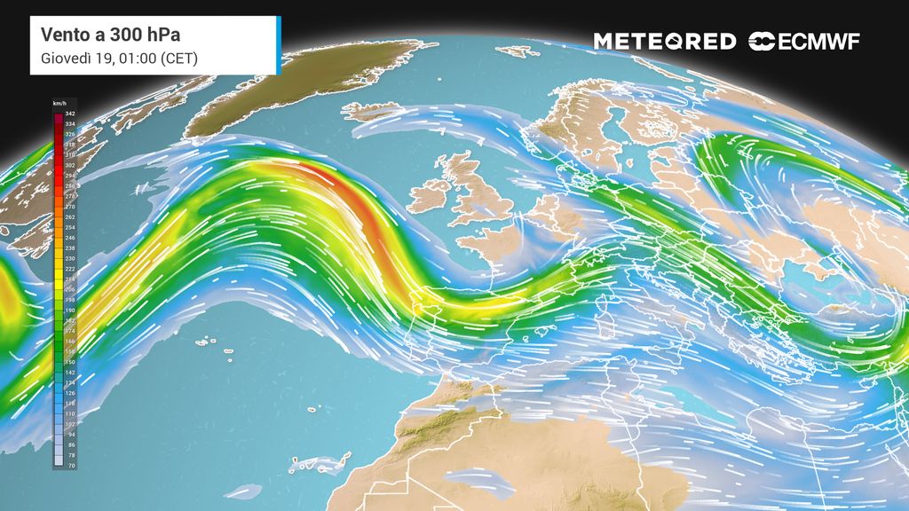 Dietro a questi venti di burrasca c'è la Corrente a Getto. Questo potente flusso d'aria ad alta quota sta scorrendo con estrema velocità da nord-ovest proprio sopra l'Arco Alpino. La sua intensità è tale da influenzare la ventilazione anche alle quote inferiori fin sui campi di gara attraverso un trasferimento di quantità di moto, con l'energia del "getto" che si scarica verso il basso, esasperando le raffiche che si incanalano tra crinali e valli.