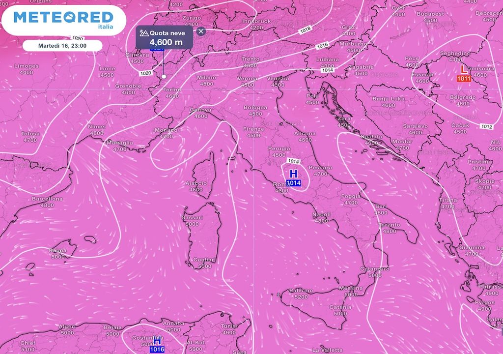 Qualche rovescio di calore, specie mercoledì, è probabile anche nell’Appennino centro meridionale. Quanto allo zero termico, sarà in lieve rialzo, portandosi a 4400-4600 m sulle Alpi, alcune zone dei ghiacciai inizieranno a scoprirsi di neve invernale. Fino a 4800-5000 m al centro sud.