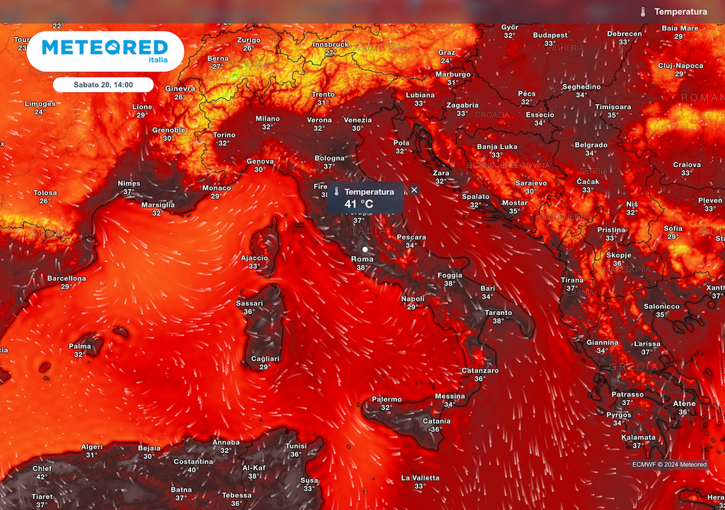 Al suolo va gradualmente prendendo forma un vasto anticiclone, originato da quello delle Azzorre, ma non nella conformazione delle sopportabili estati del passato. In quota infatti il contributo di quello africano porta isoterme fino a +20°C a 850 hPa a ridosso delle Alpi e in prospettiva anche a nord di esse.