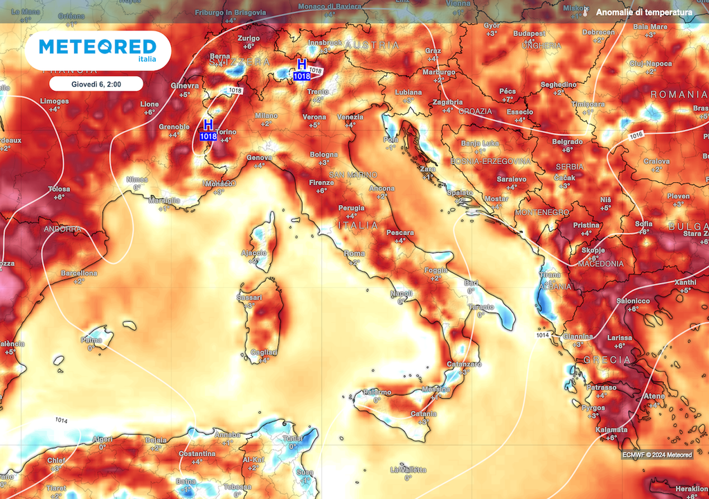 Venerdì giornata estiva, più calda della media per inizio giugno, ma non andremo su valori anomali. Al nord e centro diverse città dovrebbero raggiungere o superare leggermente i 30°C, al sud, picchi fino a 32-34°C.
