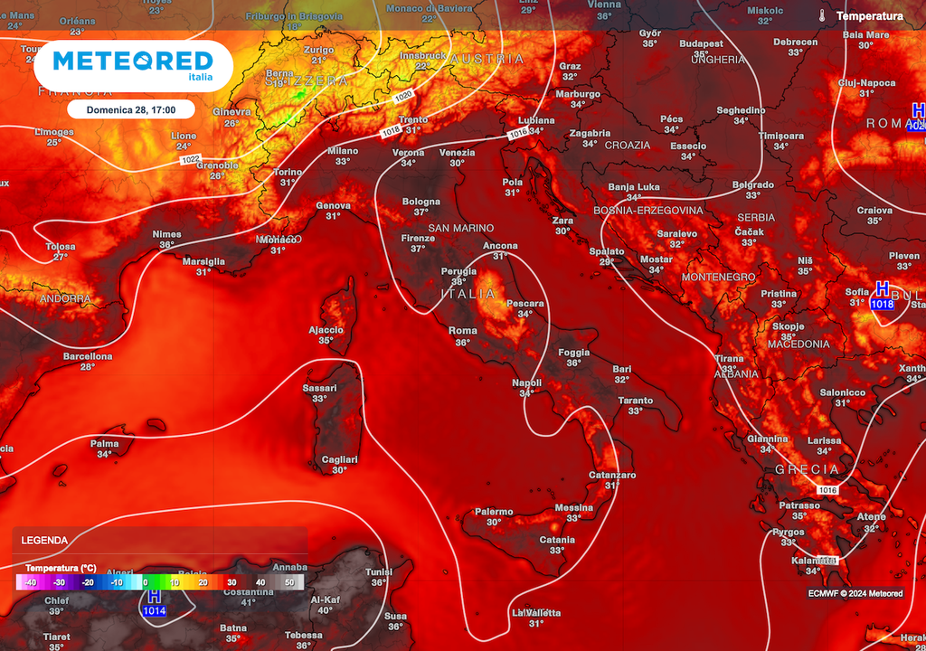 Sabato e domenica ottime giornate sulle spiagge italiane, caldo ma spesso con piacevole ventilazione di brezza. Le città però saranno caratterizzata da afa e da smog fotochimico per ozono troposferico. Difficile dormire alla notte nei quartieri più cementificati, con minime di 23-26°C, fastidioso di giorno avere 35-37°C sia al nord che al centro sud, anche se paiono rari i 40°C, limitati a piccole zone interne.