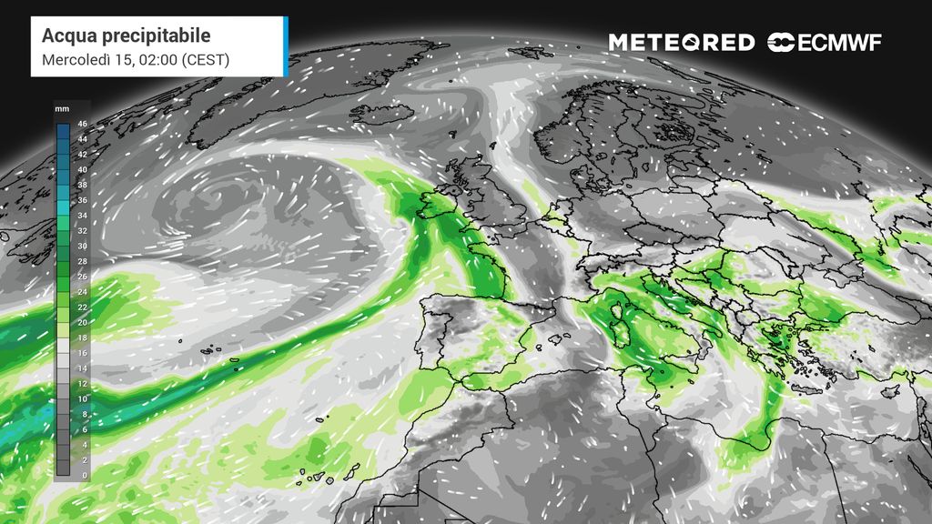 Questa depressione verrà agganciata e trascinata verso est, nel Mediterraneo, da una perturbazione atlantica proveniente dalle Isole Britanniche. I due sistemi si fonderanno, dando origine ad una depressione che dalle coste nordafricane raggiungerà tutta l'Italia. Il peggioramento inizierà a interessare la Sardegna e il Nord-Ovest nella giornata di domenica 12 aprile, per poi estendersi su tutto il Paese, con una settimana decisamente più dinamica e piovosa.