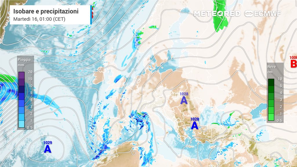 Il vero cambiamento è atteso a partire da martedì 16 dicembre, quando si conferma l’avvicinamento di una perturbazione atlantica ben strutturata, associata a un minimo barico in approfondimento sulla Penisola Iberica.