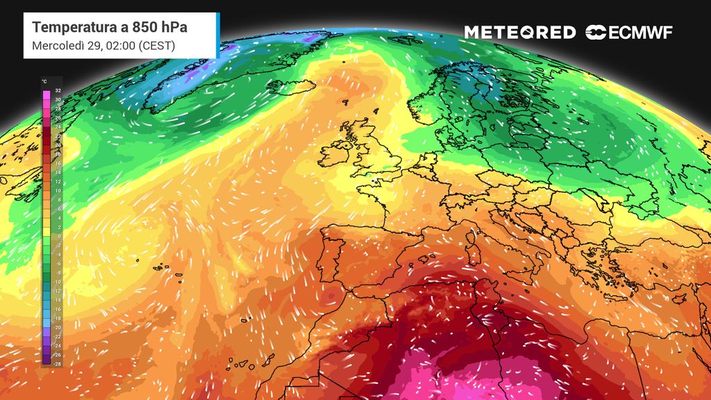 Il cambiamento dovrebbe iniziare a manifestarsi tra martedì 28 e mercoledì 29 aprile, quando l'anticiclone atlantico continuerà a dominare stabilmente con i suoi massimi di pressione tra le Isole Britanniche, il Mar del Nord e la Penisola Scandinava occidentale.
