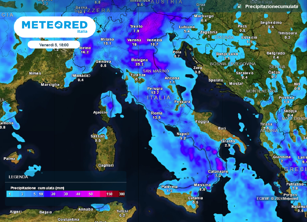 Le previsioni meteo per venerdì 5 luglio sono caratterizzate da un deciso miglioramento delle condizioni del tempo, questo grazie ai forti venti di Maestrale che spazzeranno via le nubi da gran parte dell’Italia, in attesa di un nuovo peggioramento che in serata riporterà le piogge sull’estremo settore nord-occidentale del nostro Paese.
