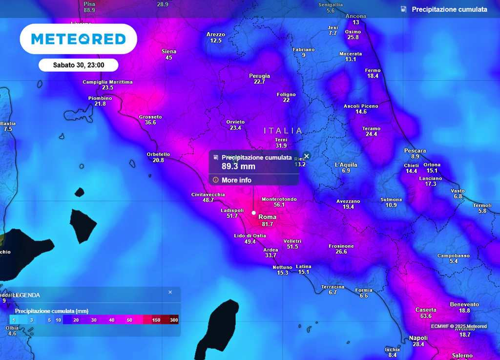 Tuttavia, al momento, sembra molto probabile che in certe aree del litorale tirrenico centro-meridionale si raggiungano picchi di oltre 100 mm tra la giornata di venerdì 29 e sabato 30 agosto.