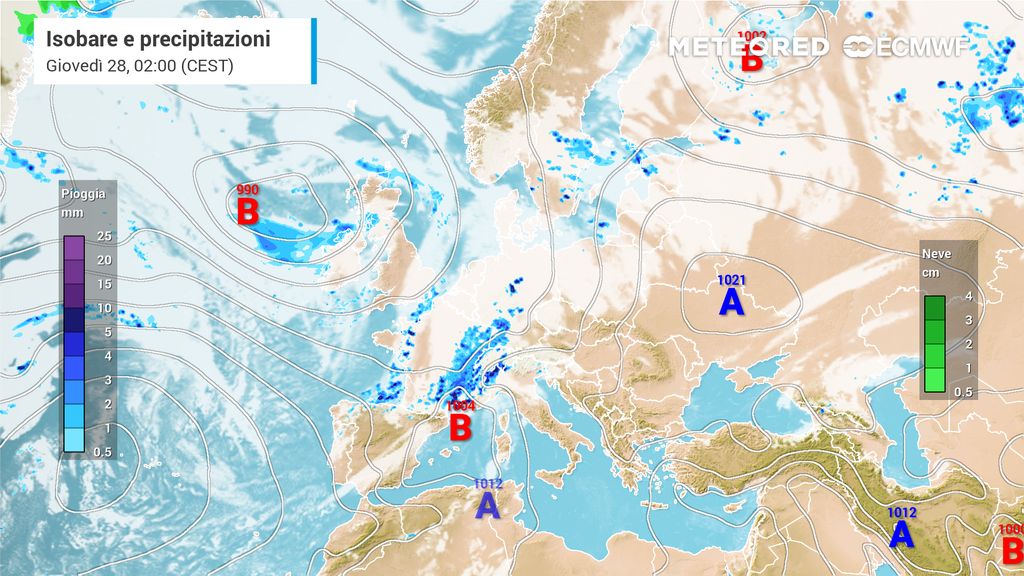 Le piogge potrebbero essere violenti e persistenti. Al momento il modello europeo vede una possibilità di temporali molto violenti anche nell'area di Roma. Torneremo su queste previsioni (qui la nostra pagina speciale), che diventeranno più accurate con l'avvicinarsi dell'episodio di maltempo.