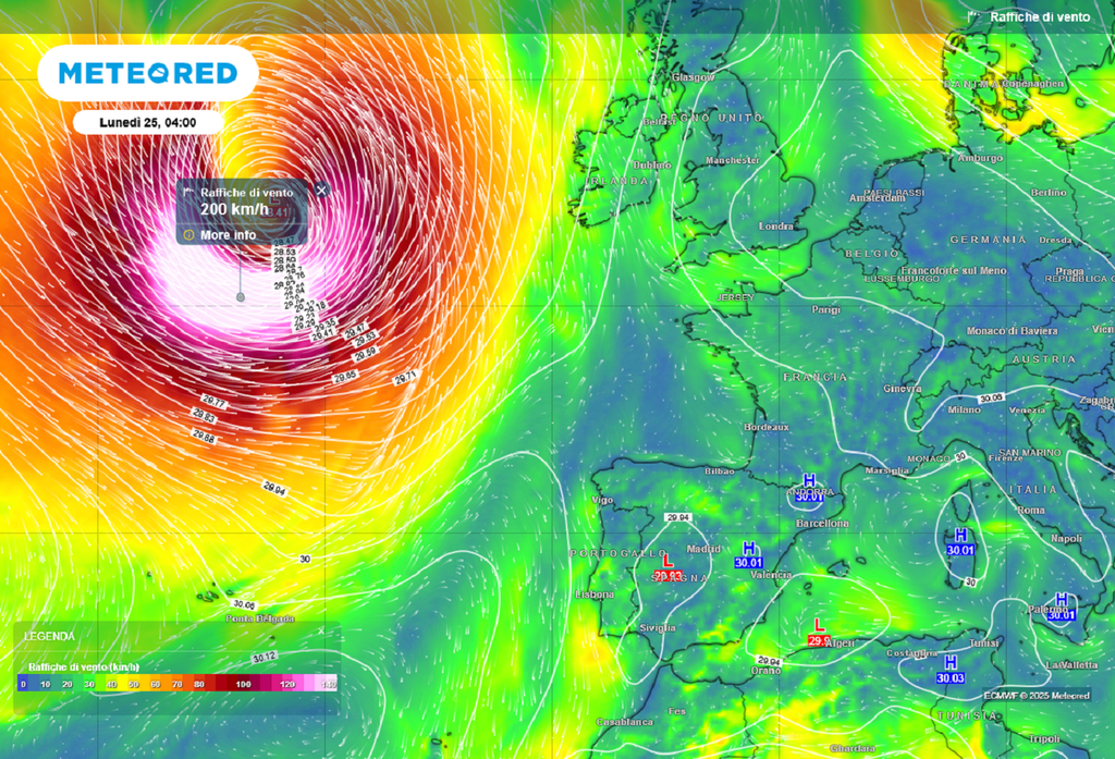 D’altra parte, come menzionato precedentemente, trasformandosi in un ciclone extratropicale aumenterà il suo raggio d’azione, generando venti molto forti che causeranno una grande mareggiata nell’Atlantico settentrionale, estremamente violenta per il mese di agosto.