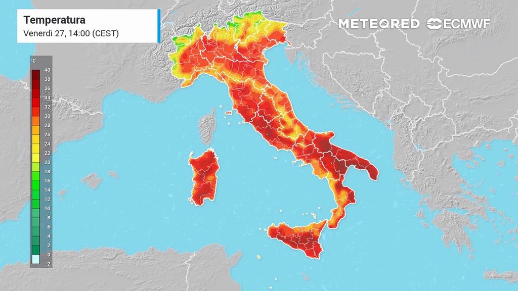 La prima parte della prossima settimana sarà contrassegnata da un’ulteriore espansione dell’alta pressione, che comporterà un nuovo aumento delle temperature anche sulle regioni adriatiche, che in questo fine settimana rimarranno più al riparo dal grande calore. Si prevedono così valori prossimi ai 40 °C in diverse aree, specie in Puglia.