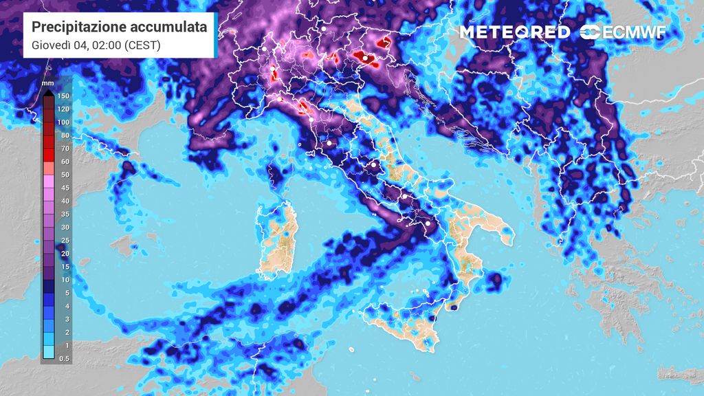 Nelle prossime ore il fronte perturbato avanzerà verso est, interessando Lombardia, Veneto, Friuli Venezia Giulia e i settori tirrenici del centro. Le zone alpine, prealpine e la Liguria resteranno le più esposte, con accumuli pluviometrici che potranno risultare significativi.