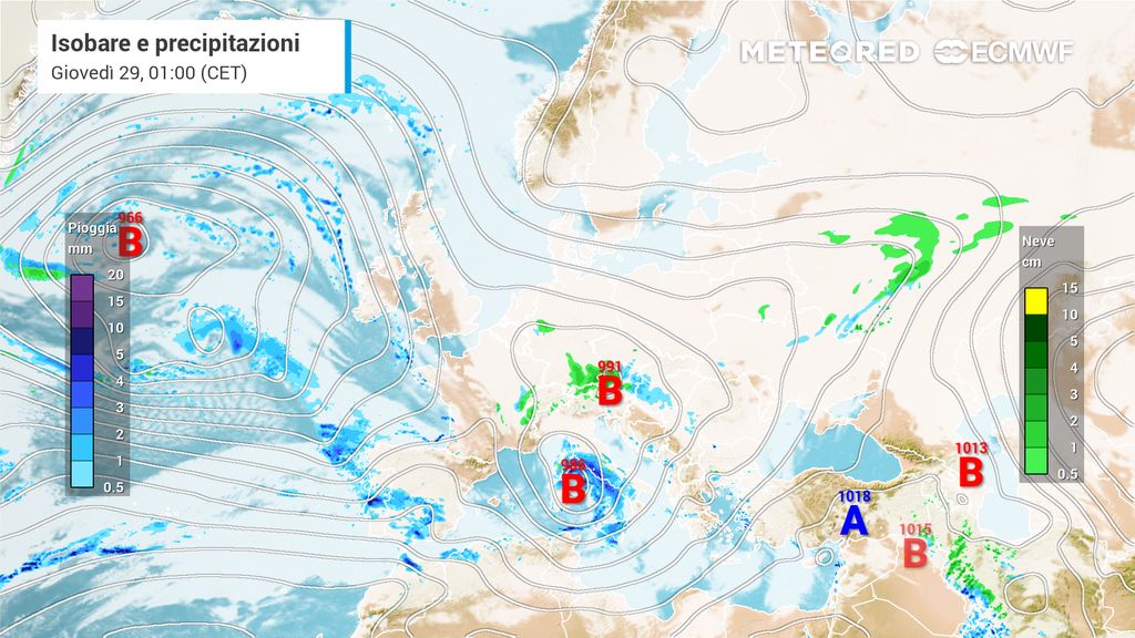 Con il passare delle ore la giornata di mercoledì 28 gennaio vedrà maltempo generalizzato su buona parte dell'Italia. Avremo piogge e temporali anche intensi. Neve oltre 1000 metri sulle Alpi, fino in pianura sul Piemonte. I nostri modelli indicano maggior probabilità di accumuli pluviometrici importanti (decine di millimetri) sulle regioni tirreniche.