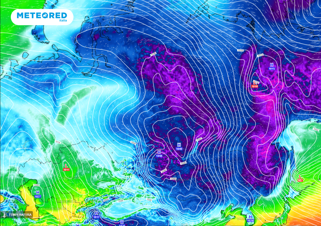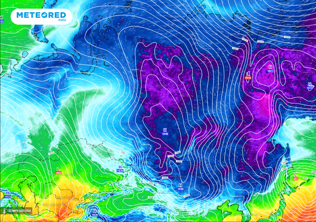 L’affondo del “lobo siberiano” del vortice polare fra la Russia e il bassopiano della Siberia occidentale sta determinando un brusco raffreddamento di tutto il comparto siberiano centro-occidentale.