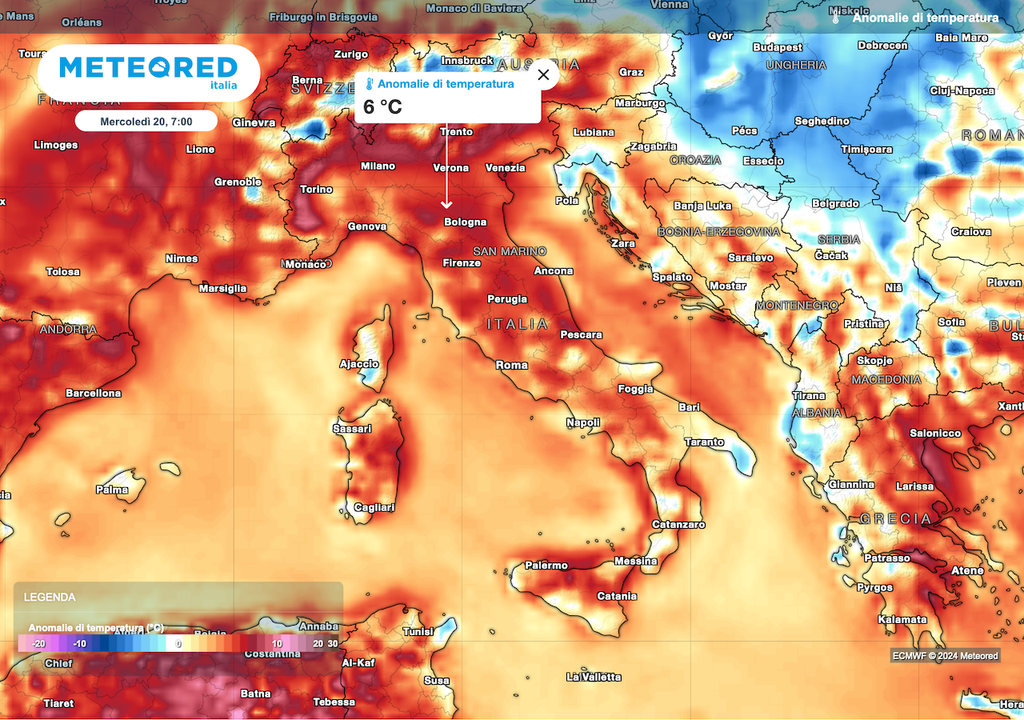 Scarso l’effetto di questo passaggio nuvoloso sulle temperature, sostanzialmente invariate, mentre appunto aumenterà la ventilazione e renderà i mari, specie Adriatico, più mossi.