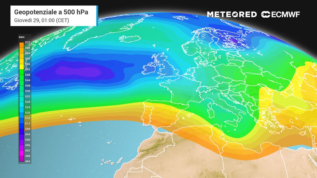 Giovedì 29 mattina l'ennesima perturbazione atlantica, in arrivo da ovest, potrebbe aver già raggiunto la Sardegna e la Sicilia con possibili temporali, mentre l'estremo Sud potrebbe essere ancora alle prese con la precedente perturbazione in allontanamento verso est.