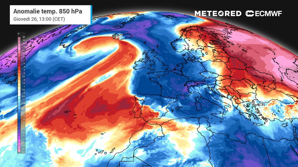 Giovedì sarà invece una giornata segnata dal ritorno dell'inverno, dalla Francia all'Italia, fino in Spagna, con anomalie termiche importanti rispetto alla media del periodo. Il calo termico proseguirà venerdì, ed avremo anche gelate.