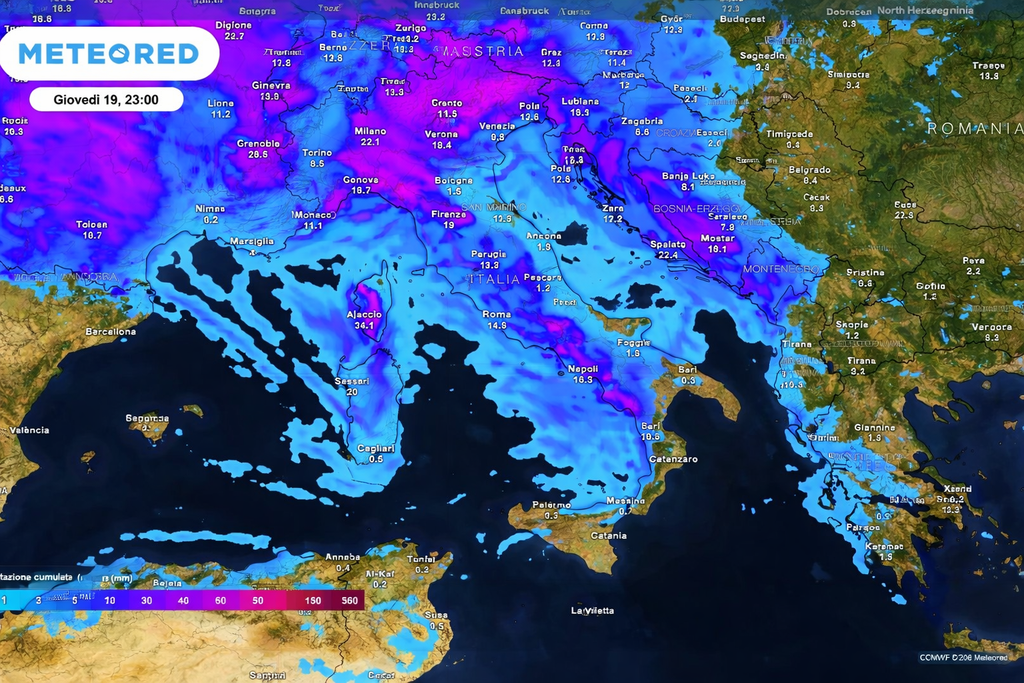 Il maltempo non si limiterà al versante tirrenico: piogge diffuse sono attese anche sulla fascia prealpina veneta, sulle pianure limitrofe e sul Friuli Venezia Giulia, mentre acquazzoni intermittenti sono previsti sul settore orientale della pianura veneta e in Emilia.