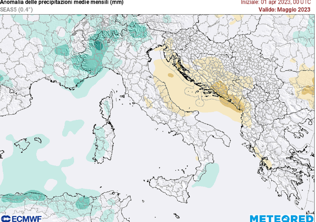 Secondo l’ultima analisi fornita da ECMWF tra la fine di aprile e i primi giorni di maggio si evidenzia la possibilità di avere pressioni sopra la media sull’area mediterranea. Quindi in sostanza la presenza di un anticiclone.