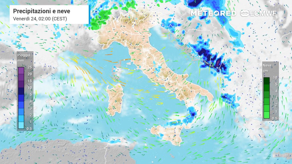 Tra oggi e domani i venti saranno un elemento di rilievo di questa ondata di maltempo. Il Libeccio soffierà con forza sul Mar Ligure e sulle coste toscane, dove si potranno registrare mareggiate significative, mentre lo Scirocco sull’alto Adriatico provocherà un innalzamento della marea con possibili allagamenti costieri.