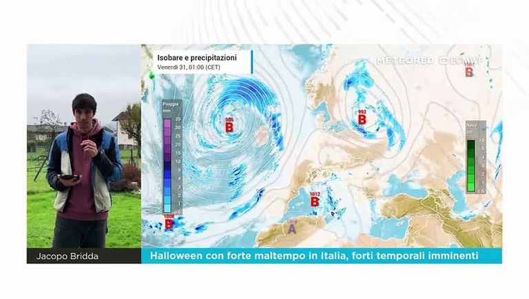 Una perturbazione atlantica attraversa l’Italia proprio alla vigilia di Halloween: piogge diffuse oggi, poi rovesci serali al Sud tra Calabria, Basilicata e Puglia. Breve tregua sabato, ma domenica torna il maltempo con piogge intense al Nord e venti di Scirocco!