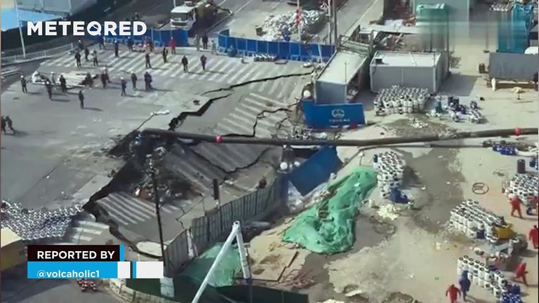 Gli abitanti hanno immortalato il momento in cui l'asfalto è crollato e si è sprofondato in un enorme cratere scuro, generando immagini scioccanti che sono rapidamente diventate virali.